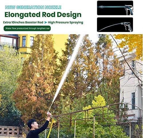 - STEPLESS ADJUSTING SPRAYING-Adjusting Spraying mode by rotating the head of nozzle to fit various demands for you,including cleaning your car, walkway,deck, home,yard,lawn,pets,etc.Water flow changed from soft and larger range to further and small range by adjusting spraying head.