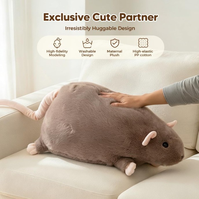 Realistic & Adorable Mouse Design With its soft ears, round snout, and expressive eyes, this plush mouse brings a smile to anyone’s face. It’s cute enough for kids, stylish enough for adults, and comforting for seniors.