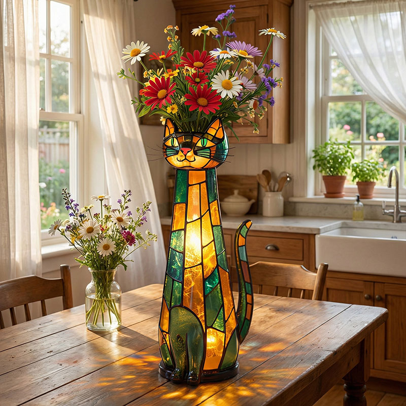 - 🐱 Exquisite cat vase lamp with rich amber & emerald tones