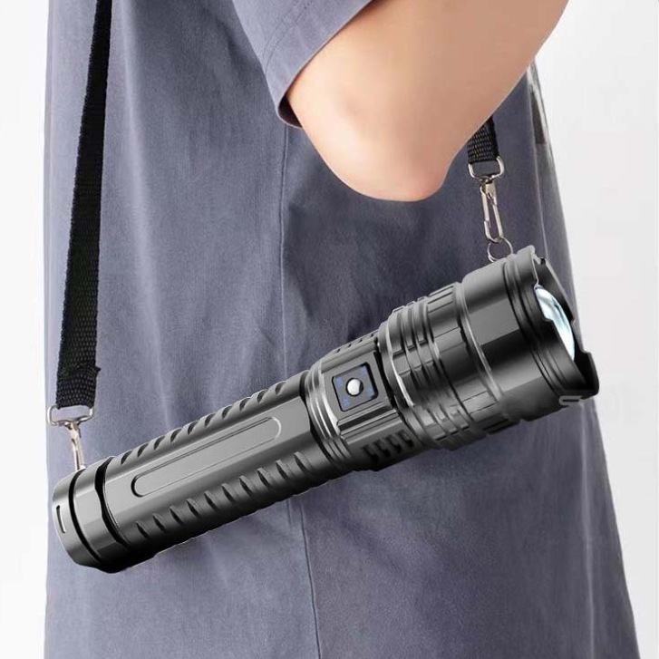 The flashlight is equipped with telescopic zoom design, which can adjust the spot size and focal length according to actual needs, and achieve different lighting effects from wide Angle to concentrated light