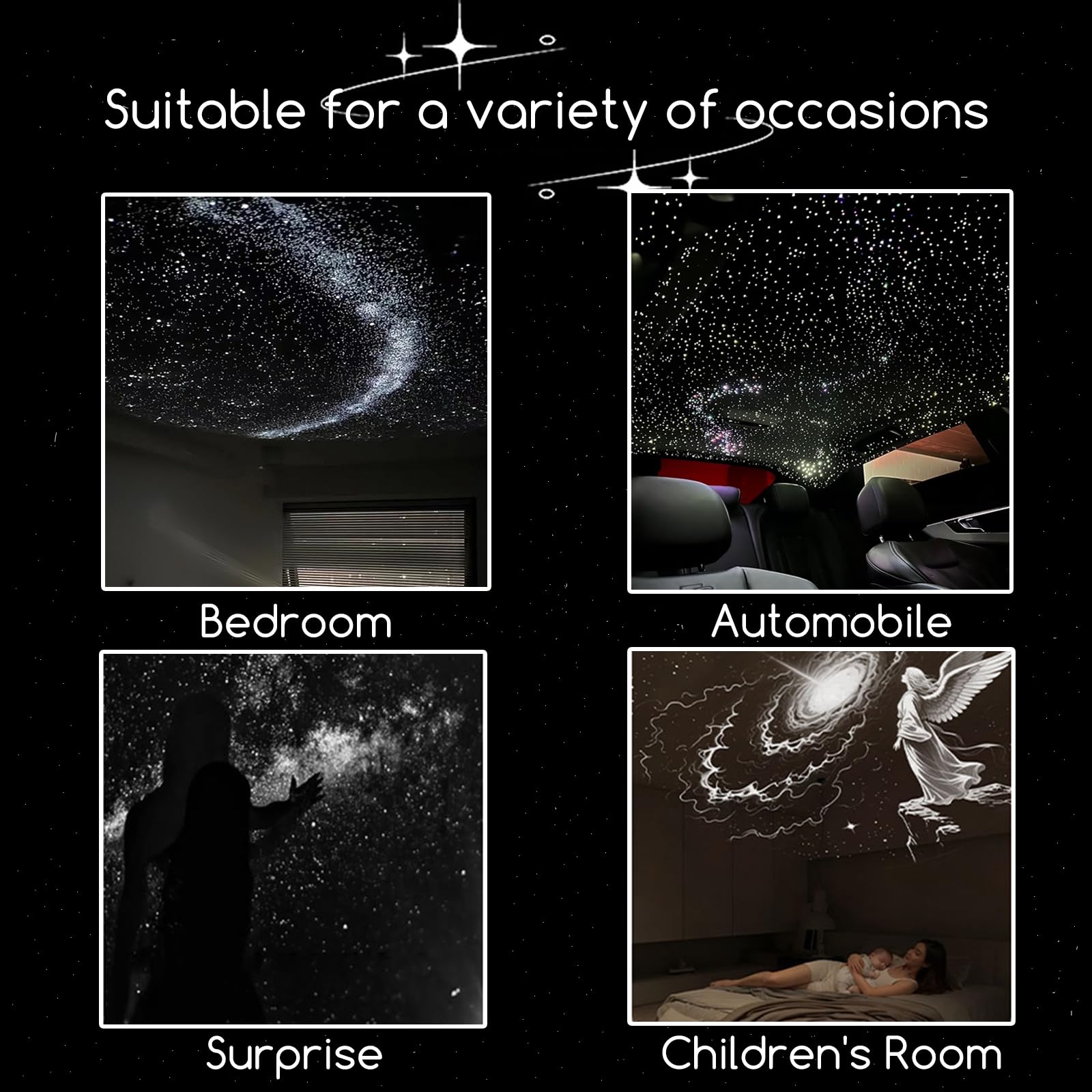 The projector head rotates a full 360°, allowing you to cast stars on the ceiling, walls, or any direction you choose. Perfect for positioning the light exactly where you want it.