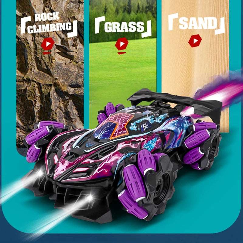 All-Round Drift Hand Controlled RC Car : Running forward, backward, left, right, rotate, all round drift, spray,race to your order by hands, provide superior gaming experience for both kids and adults. With color changing lights and switched dynamic music at any time , this toy cars is more fun in days and nights, indoor and outdoor.Easy to Control for Everyone,Whoever has an interest in race car games will enjoy it, control it as simple as move your palm.