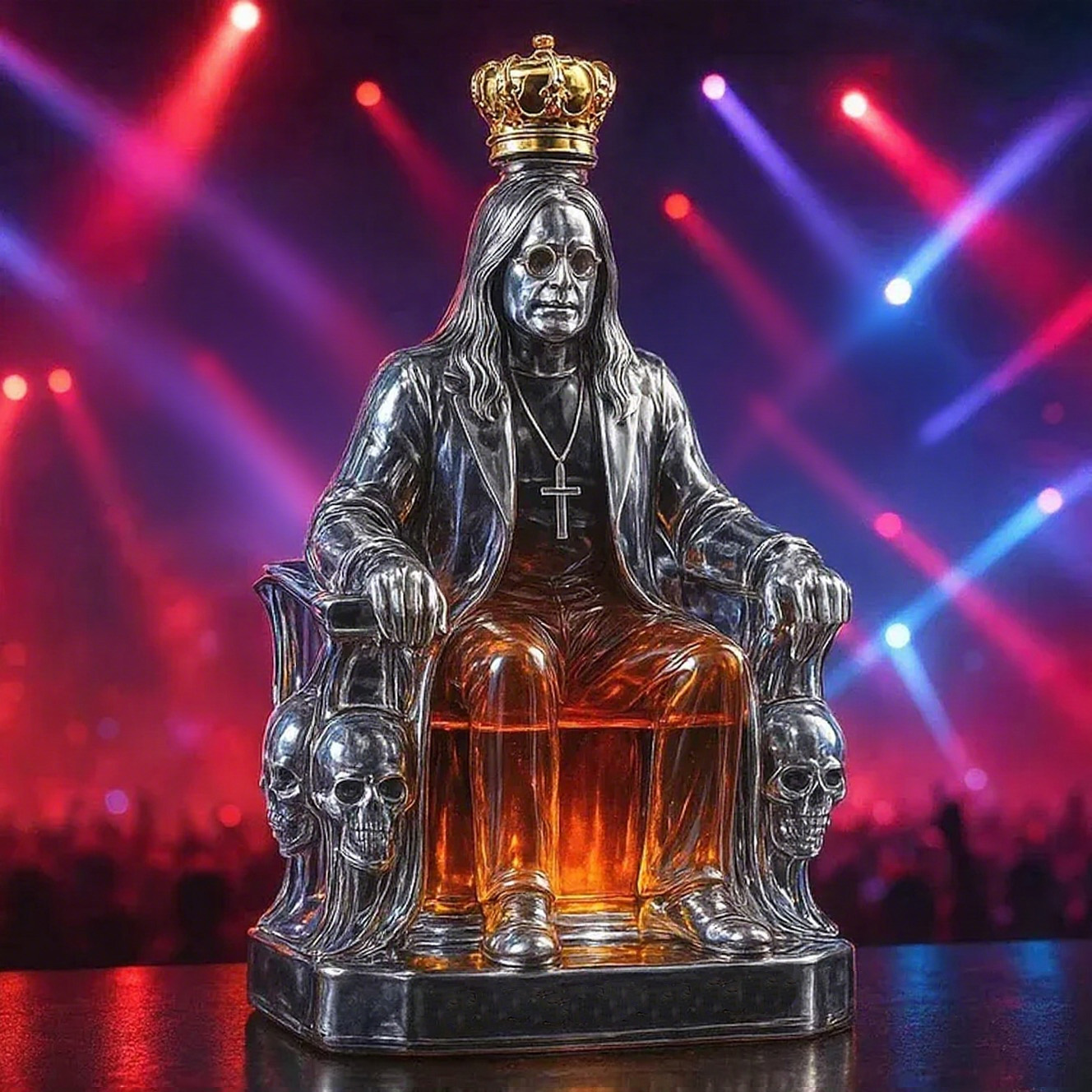 🦇🖤The In Memory of Metal Legend whiskey bottle is a tribute to an era and a continuation of an attitude. With bat wings spread, he sits on the throne like a king who has never left the stage.