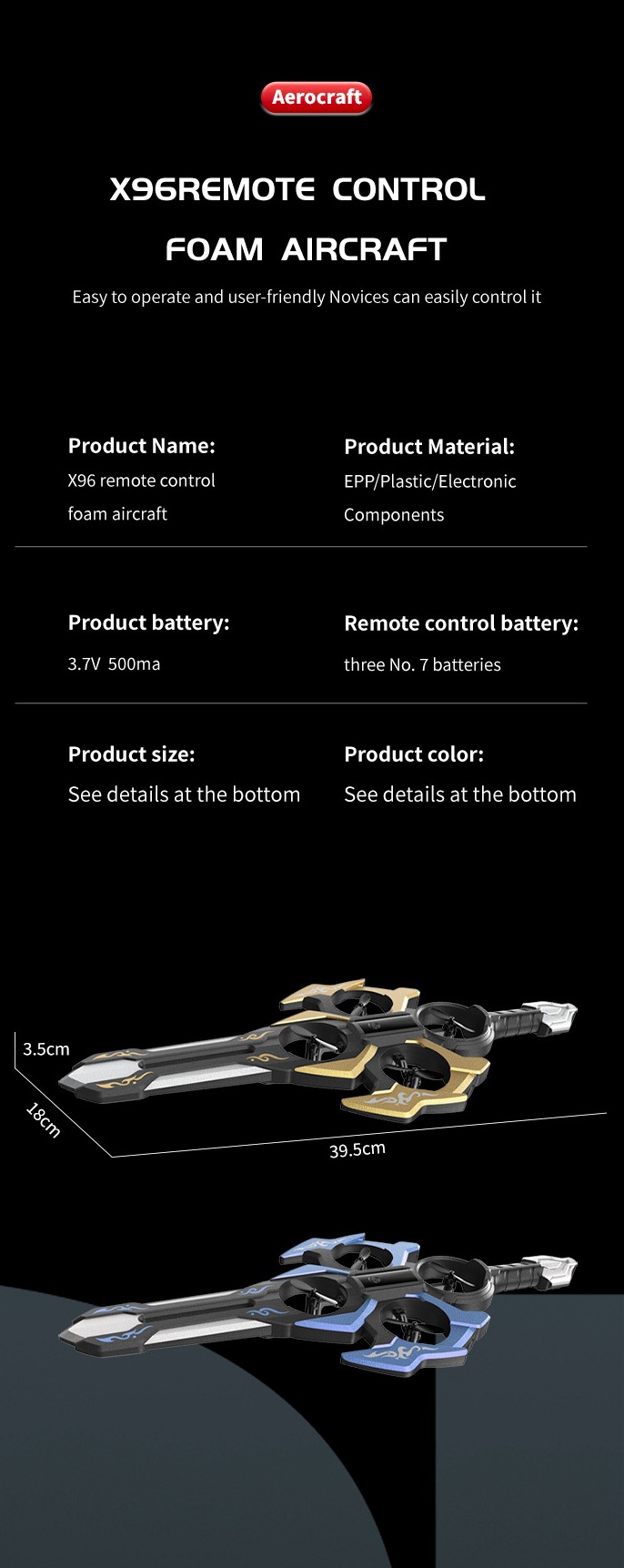 Unique Flying Sword Design: Our RC plane features a one-of-a-kind Flying Sword shape, blending the structure of a remote control airplane and a sword. It transforms from a soaring rc helicopter/drone into a handheld toys. Crafted from soft yet durable, crash-resistant EPP material, it bounces back from falls, making it the envy of the park or backyard.