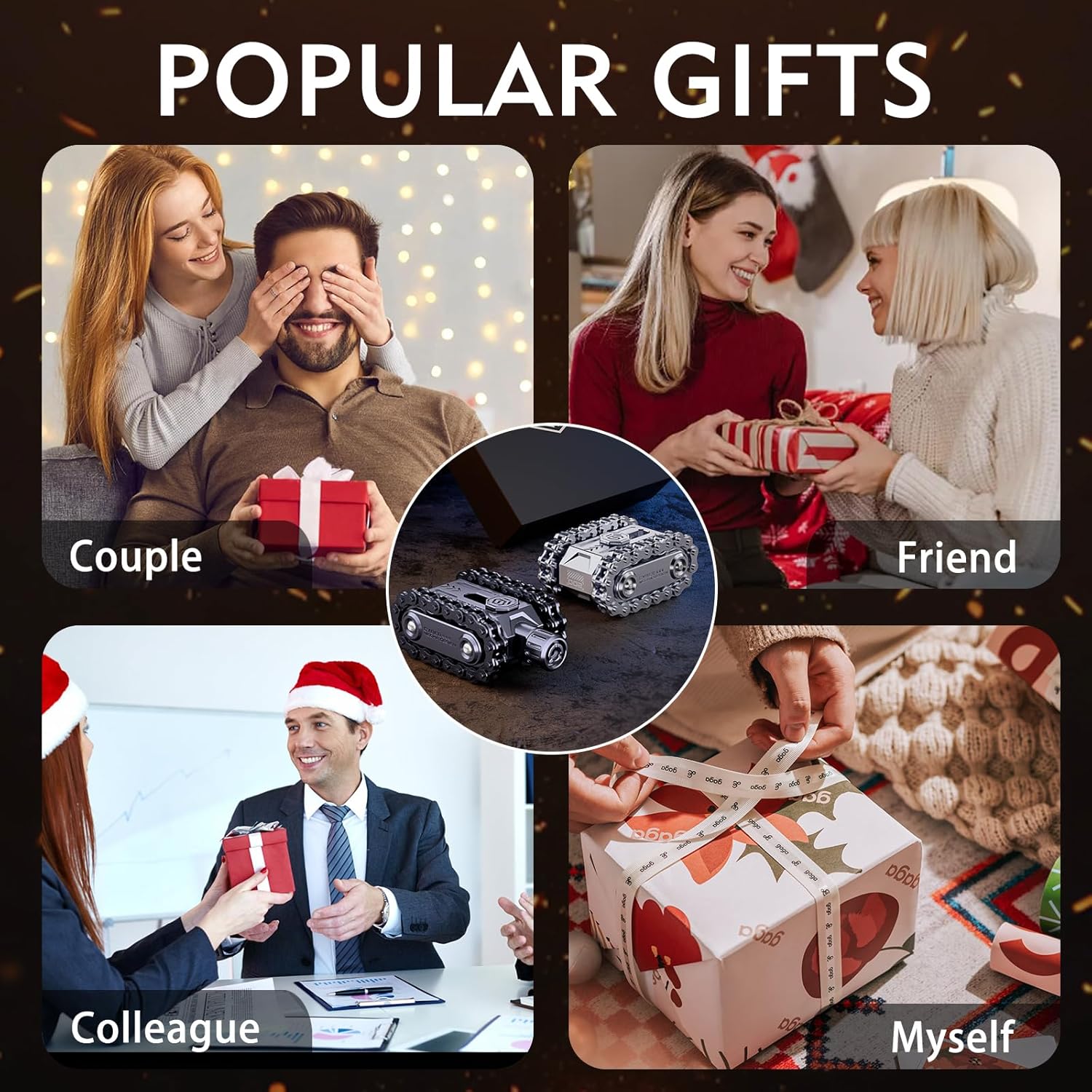 Stand out from boring fidgets! Pain stim features a unique, industrial-style mini tank aesthetic with realistic chain treads. This isn't just a toy, it's a stylish accessory and conversation starter. The 1 Gift Choice for Men, Dads, Teens, Gamers, and Colleagues on Birthdays, Christmas, Father's Day, Stocking Stuffers, or Just Because!