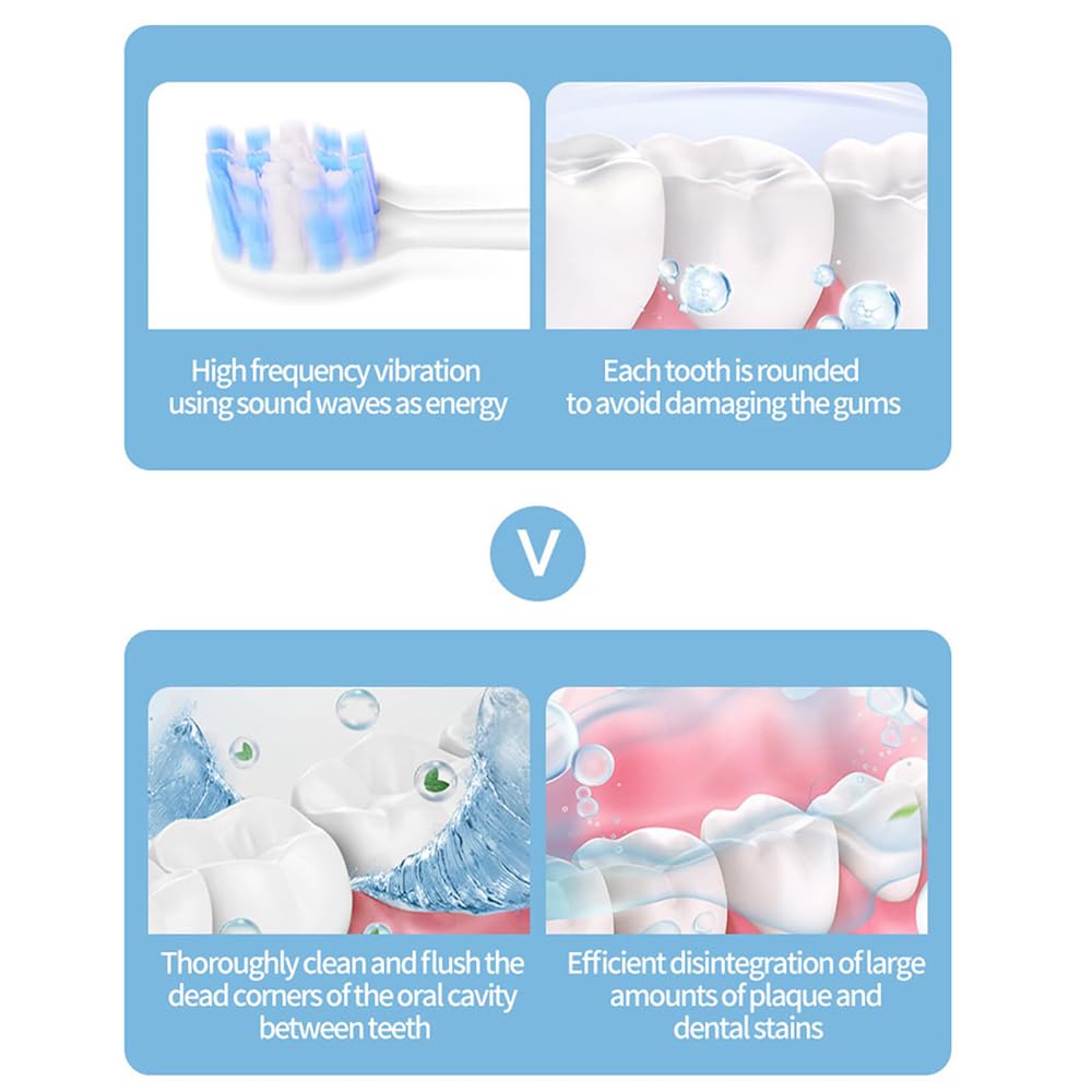 Adult Sonic Electric Toothbrush bristles are made of High-quality materials, soft, wear-resistant and non-absorbent, providing you with a safe and gentle brushing experience. The brush head fits perfectly on every tooth for better stain removal