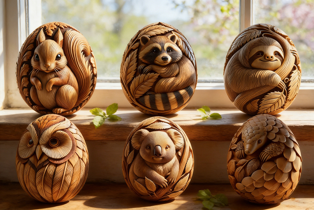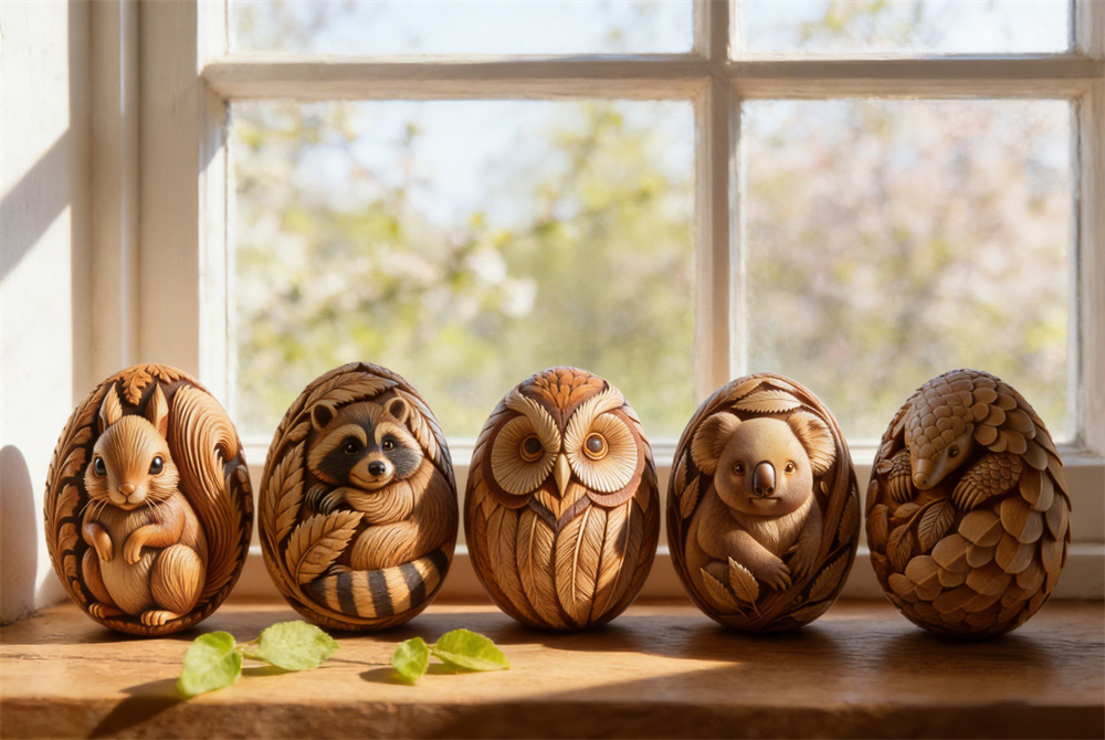 🥰Whether it's a mysterious owl, a clever squirrel, or a playful raccoon, these Easter eggs reflect the beauty and vitality of nature through unique wood carving techniques.