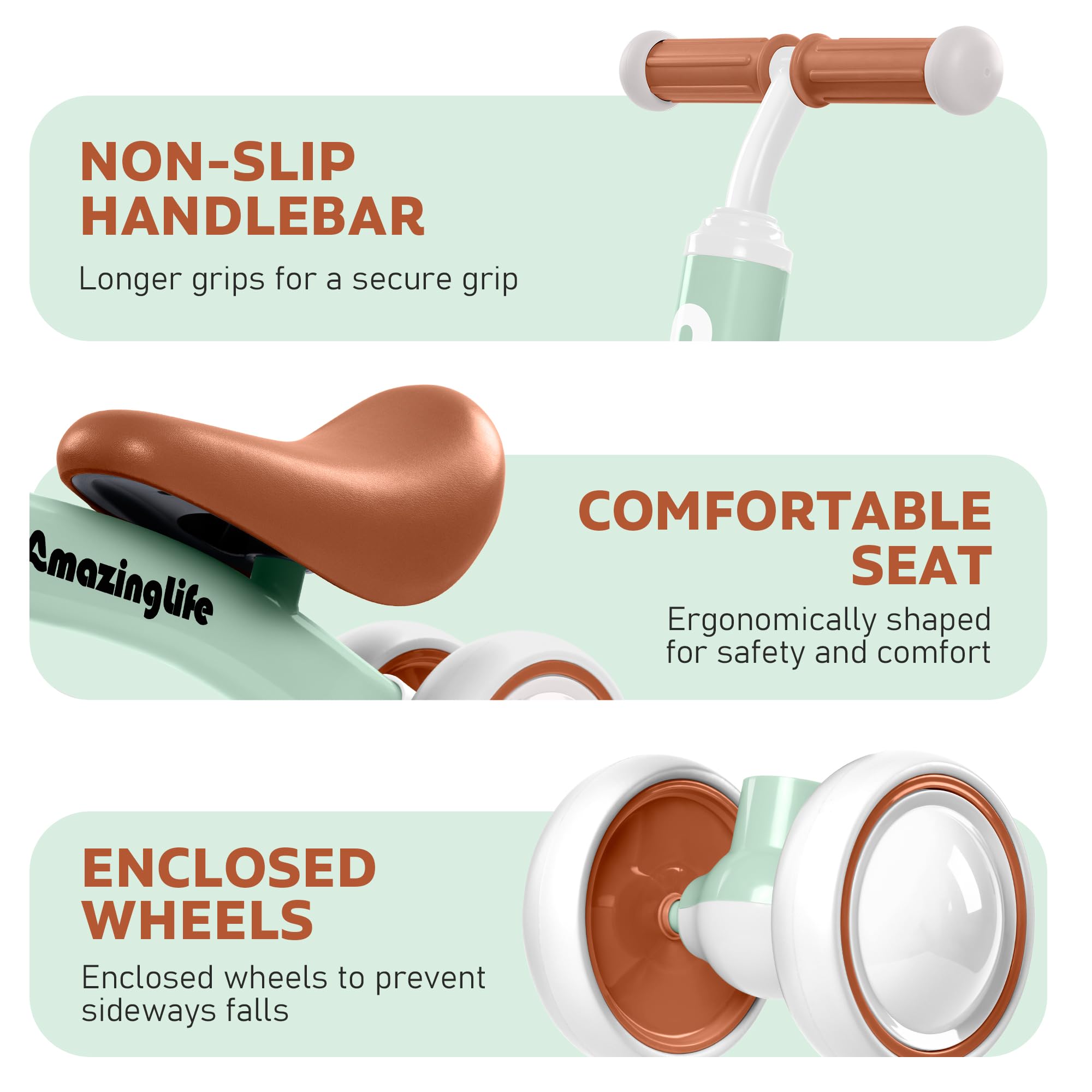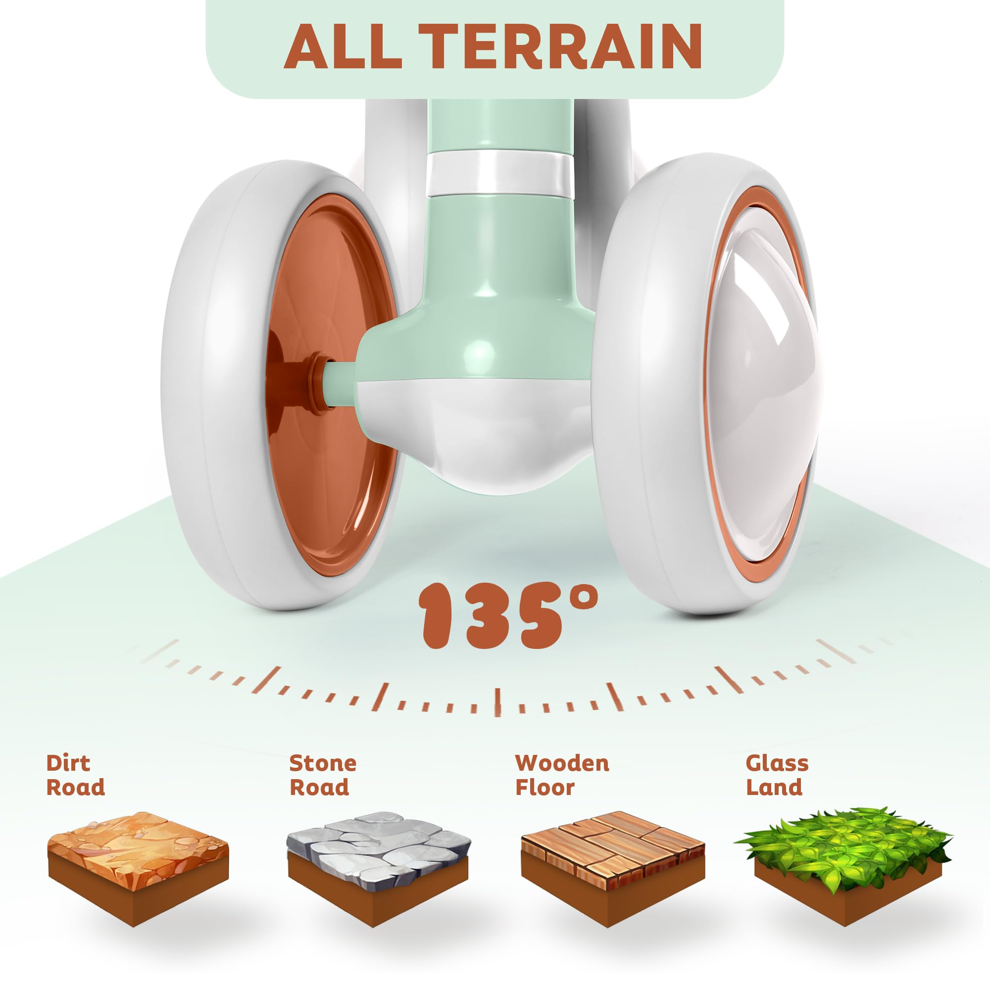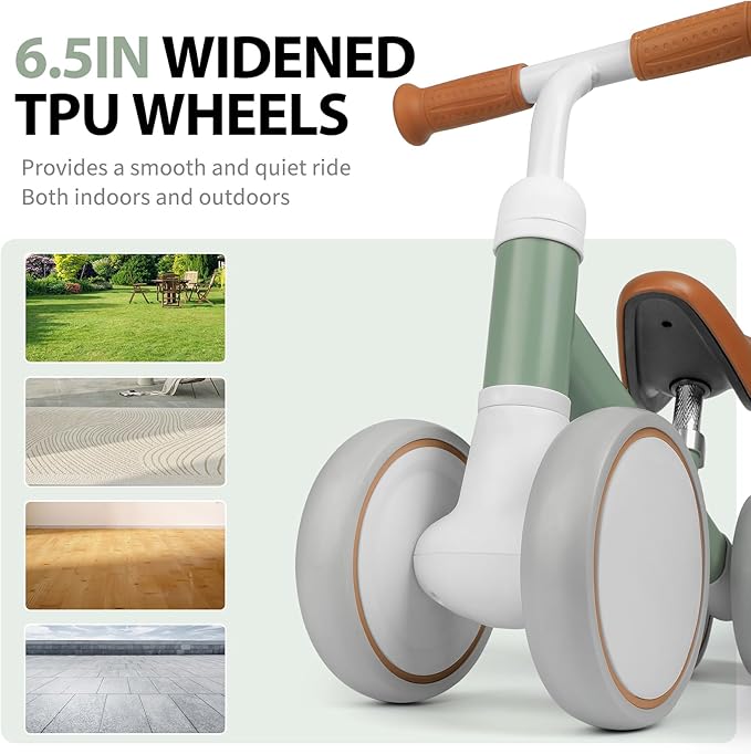 Smooth And Quiet Ride: Equipped with silent wheels, our balance bike provides a smooth and quiet ride, both indoors and outdoors (avoid uneven road surfaces). The non-slip tires offer excellent traction, enhancing stability as they cruise around.