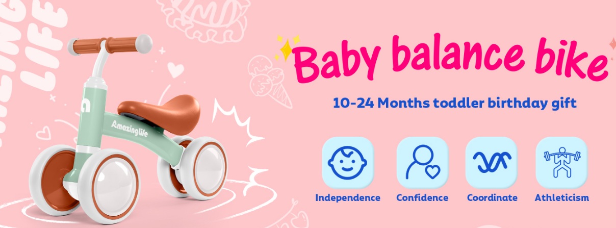 Happy Growth: Designed for kids aged 12 -24 months, this baby bike is the perfect way to start your baby's cycling journey. This balance bike helps your boy practice balance, build confidence, exercise, improve motor skills, and bring fun.