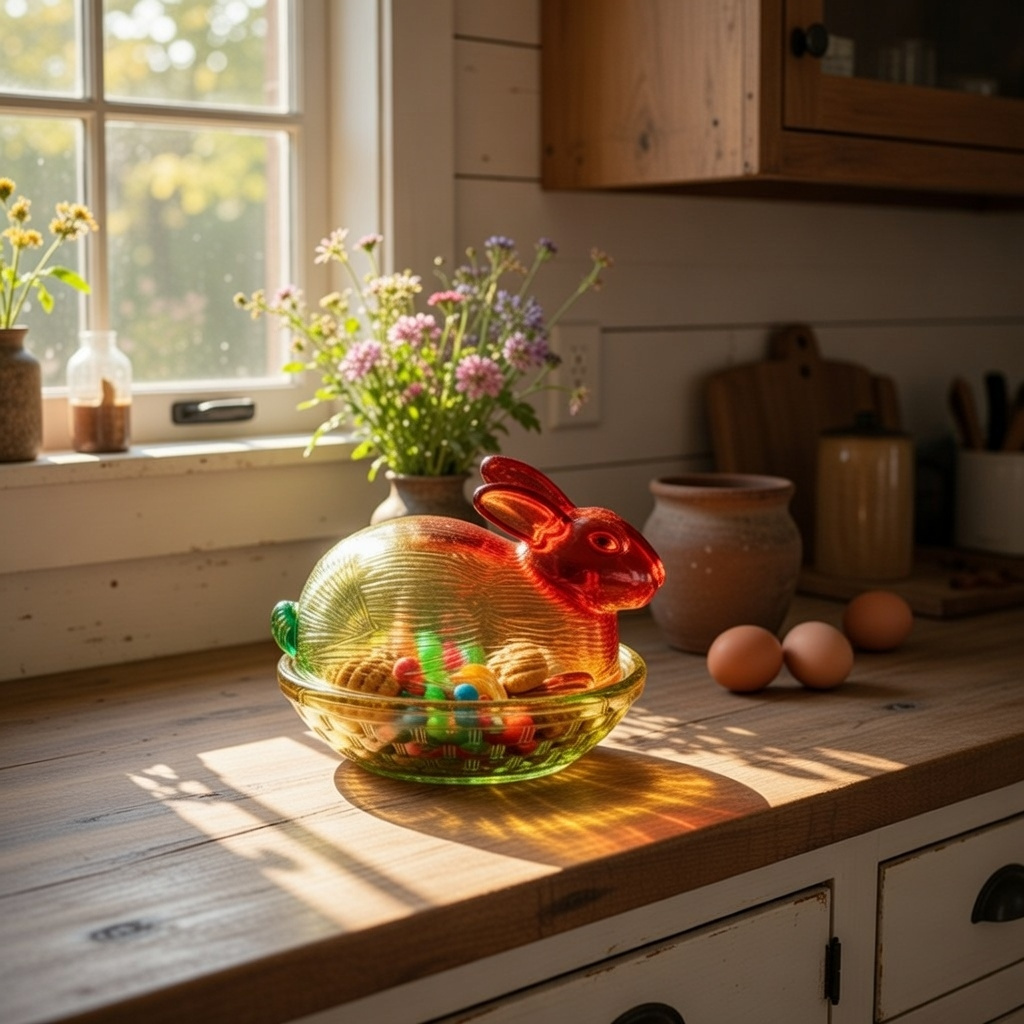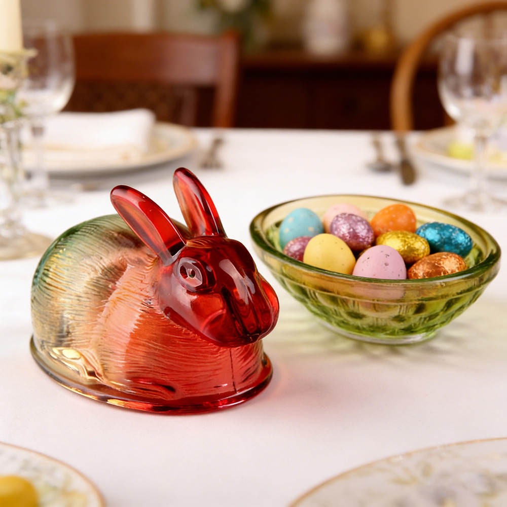Bring a touch of whimsy to your home with this enchanting frosted crystal rabbit candy jar—a delightful fusion of charm and craftsmanship. The two-piece design features a serene seated rabbit nestled into a bowl shaped like a woven basket, creating a complete and endearing "bunny in its nest" silhouette. Whether filled with candies for Easter, holding jewelry on a dresser, or simply displayed as a symbol of renewal, this rabbit brings quiet magic to your everyday.