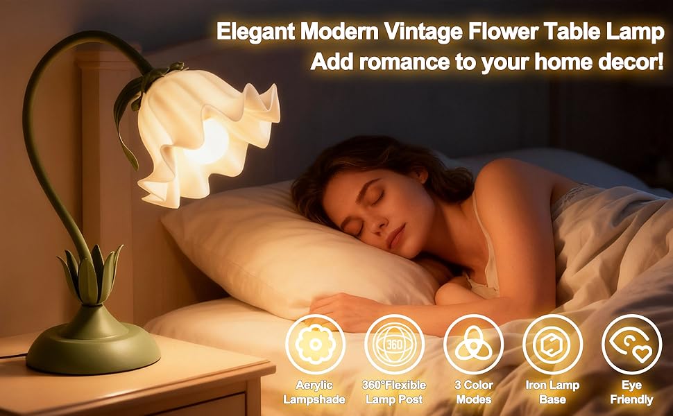 💡【3 Color Temperature Settings】Our flower bedside lamp offers 3 color temperature options (white light/natural light/warm light). With a simple press of the button, you can switch between settings to create the perfect lighting. The soft, flicker-free illumination helps reduce eye strain, making it ideal for long hours of work, study, or reading