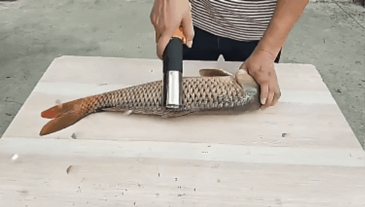 Works with river and sea fish, small or large. The roller works from head to tail with uniform stroke for consistent results.