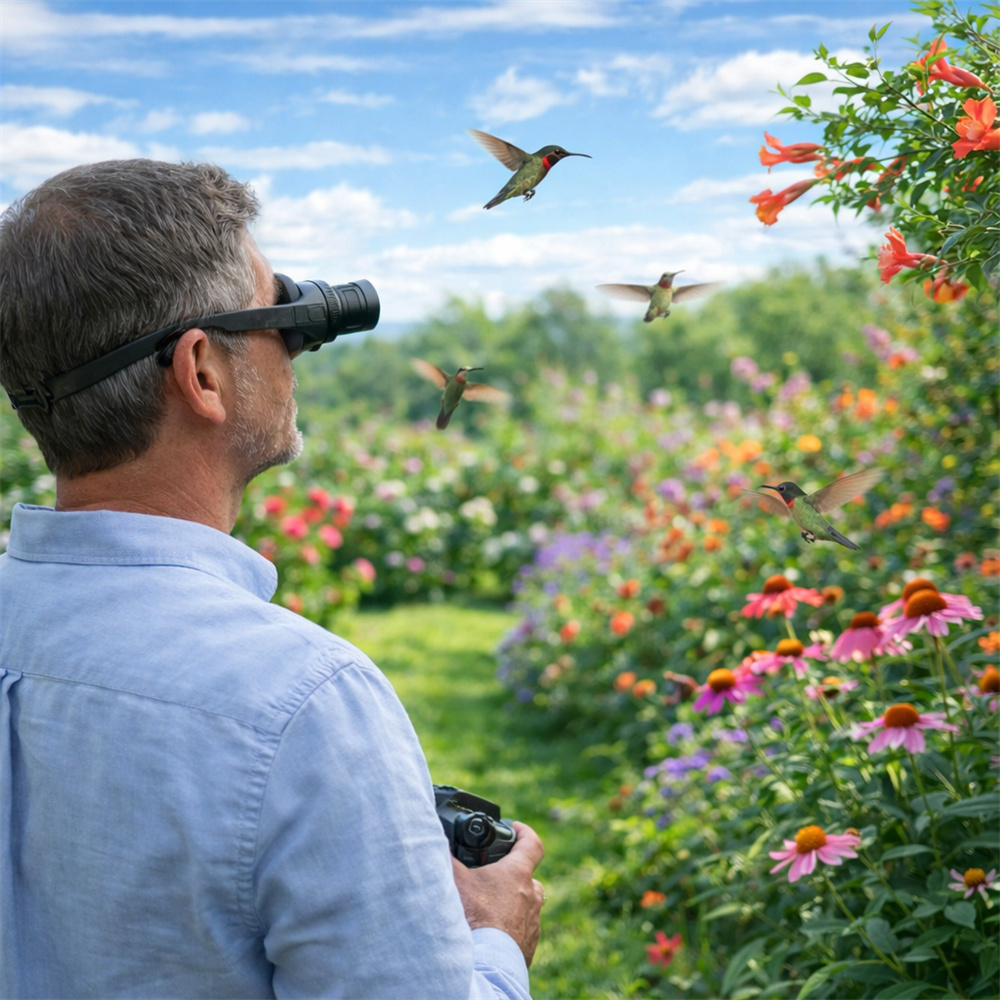 Finally, binoculars that leave your hands free to do what you love. Whether you're scanning the garden for a Hummingbird or keeping your eyes on the fishing float while baiting your hook, these Hands-Free Binocular Glasses let you see clearly without juggling equipment. Designed specifically for outdoor enthusiasts, they deliver a stable, shake-free view with impressive optical clarity—all while weighing next to nothing. Put them on, adjust for comfort, and focus on the moment, not on holding binoculars.