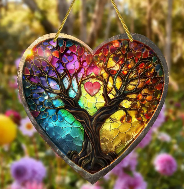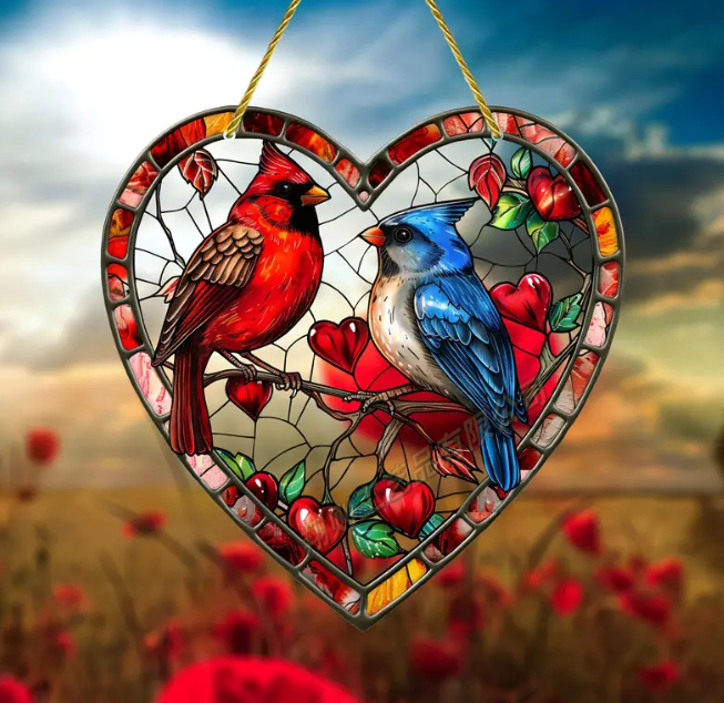 This red heart window hanging makes for a charming and romantic home atmosphere.