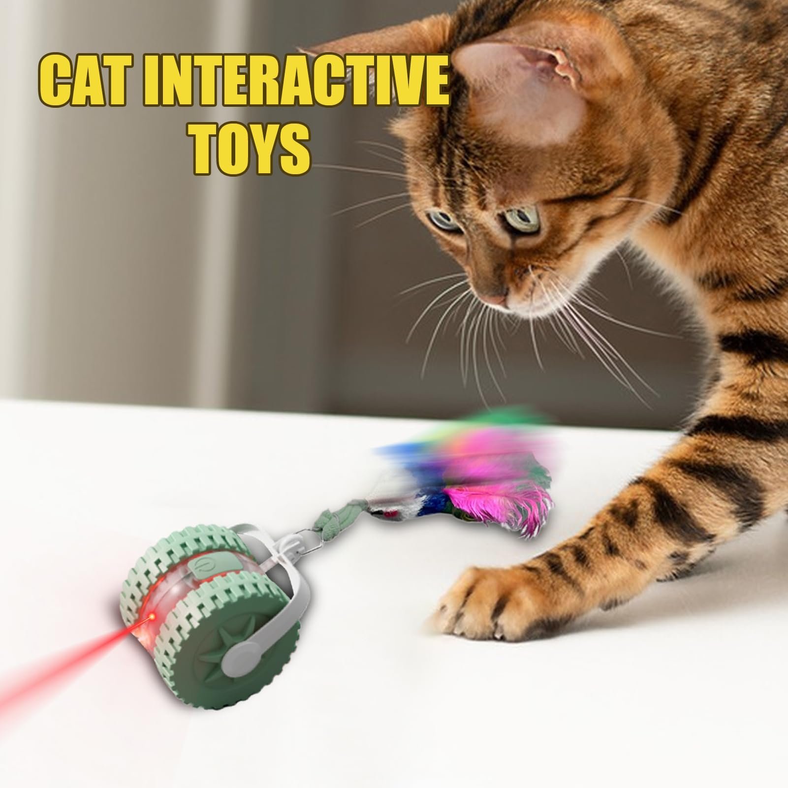 Engaging Motion Patterns : Randomized movement mimics prey dynamics, promoting reflex development and multi-sensory stimulation for interactive play. Adjust difficulty to suit your cat's needs effortlessly.