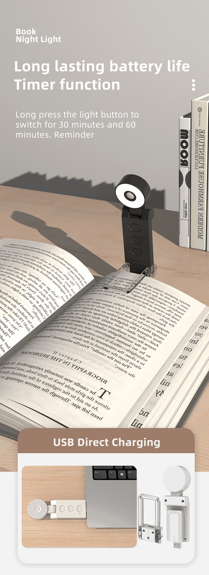 Whether you're winding down with a novel in bed, studying late into the night, or traveling light, this compact clip-on book light is your perfect reading companion.