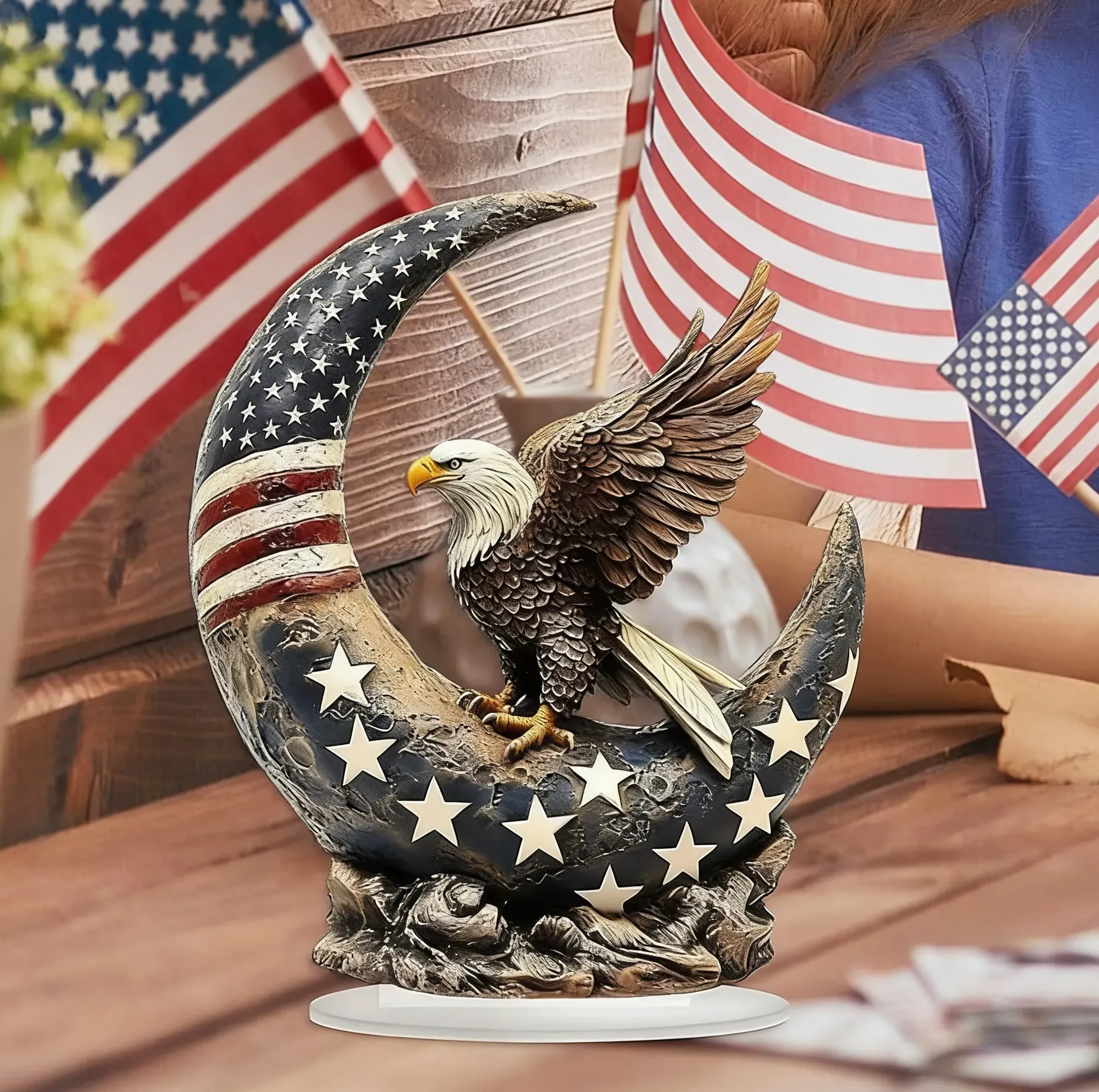 To celebrate the 250th anniversary of the founding of the United States of America (2026), we proudly present the limited edition “Wings of Freedom, Crescent Moon and Stars of Glory” acrylic eagle flat figurine. It perfectly blends the bald eagle, a symbol of the American spirit, with elements of the Stars and Stripes, showcasing the nation's pride, freedom, and enduring beauty.