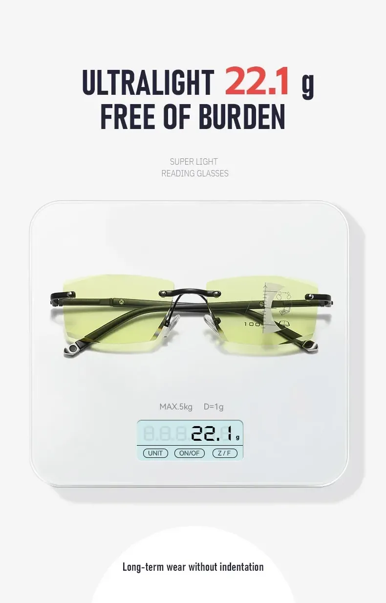 • Sleek frameless design with durable titanium alloy temples — barely noticeable on your face.