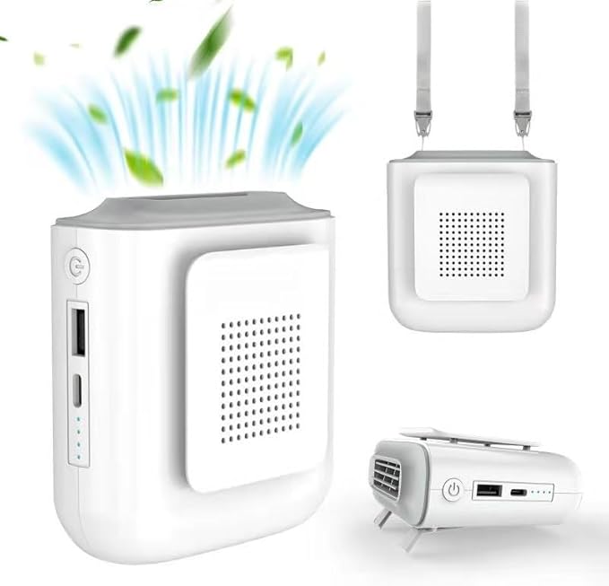 Experience hands-free cooling with this versatile necklace fan, shirt fan clip, waist fan, desktop fan, all in one compact device. Powered by a 4000mAh battery that provides up to 24 hours of runtime on a single 2.5-hour charge. With three speed settings and a minimalistic style