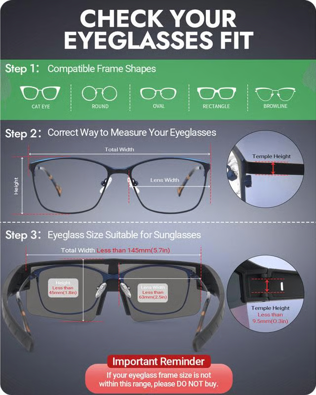 Fit Over Glasses: Designed to wear comfortably over prescription glasses with a special temple groove for a secure fit.