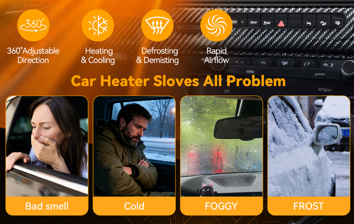This 12V car heater fan has heating & cooling functions. It can quickly clean the frost, fog, and mist on your car, windshield, side, and rear window, provide a clear view for your driving and let you enjoy the warmer driving in this cold winter.