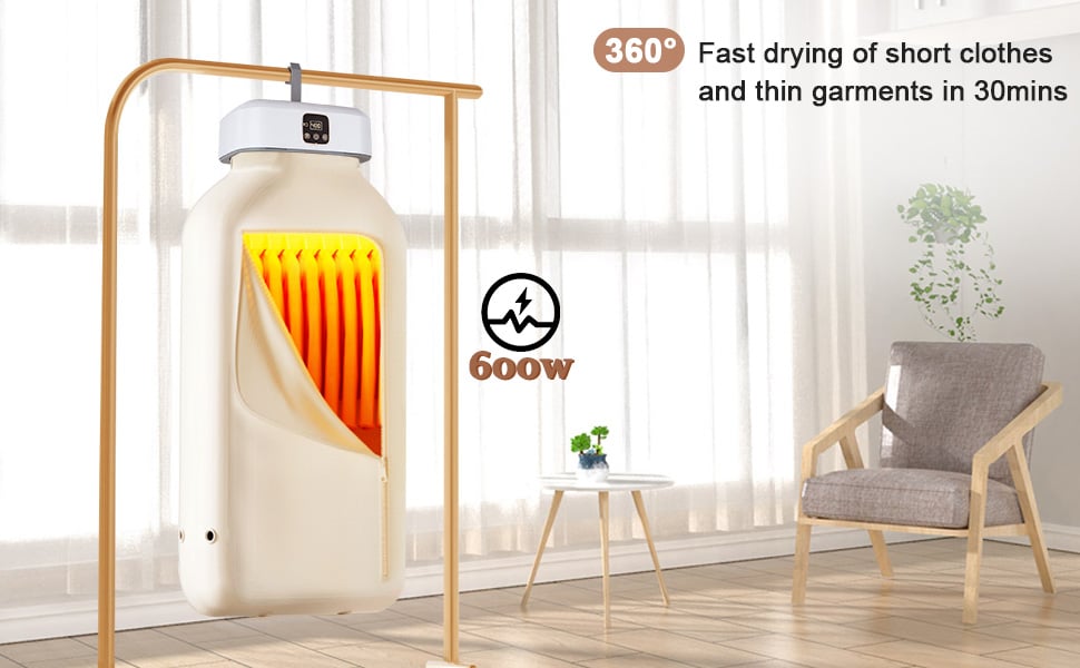 【FAST DRYING CLOTHES】portable dryer upgraded version 600w-110v powerful airflow and efficient heating system, 3D cycle three-dimensional drying, double-speed hot air drying. ptc heating original and brushless motor fan, temperature control protection, safe and reliable, to protect clothes from damage.