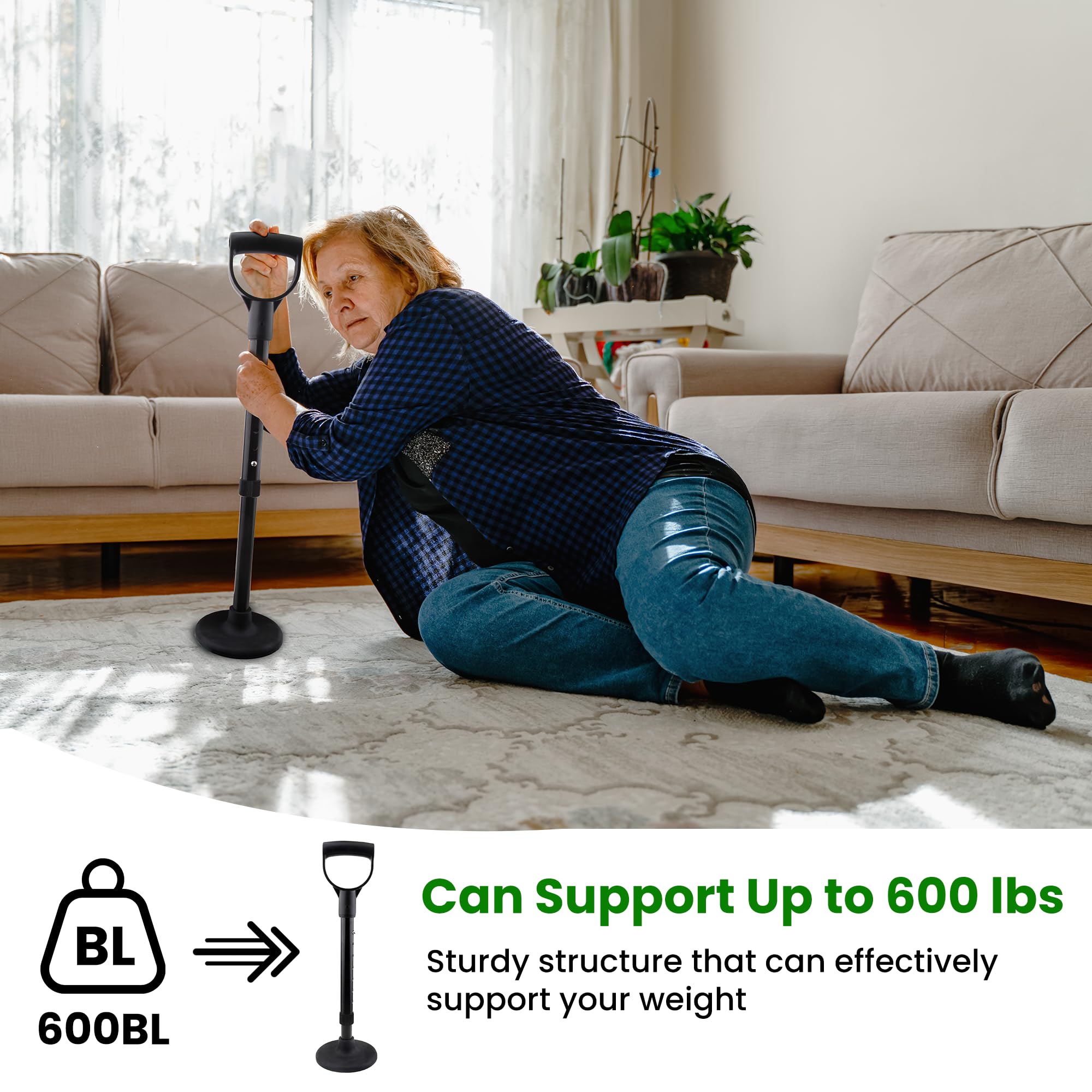 Tullyllify mobility aid is designed to help those with knee problems or mobility issues, those recovering from hip replacement surgery, back pain sufferers, or those in rehabilitation. This device helps lift elderly off floor, which reduces knee and lowers back stress and pain. It's suitable for gardening, house work, garage chores, getting up from the sofa, going up and down stairs, etc.