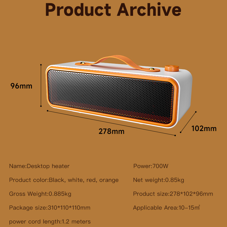 Weighing only 0.85kg and measuring just 278×102×96mm, it's ideal for placement in the bathroom, by the bed, on a desk, or next to the sofa, ensuring warmth at any time.