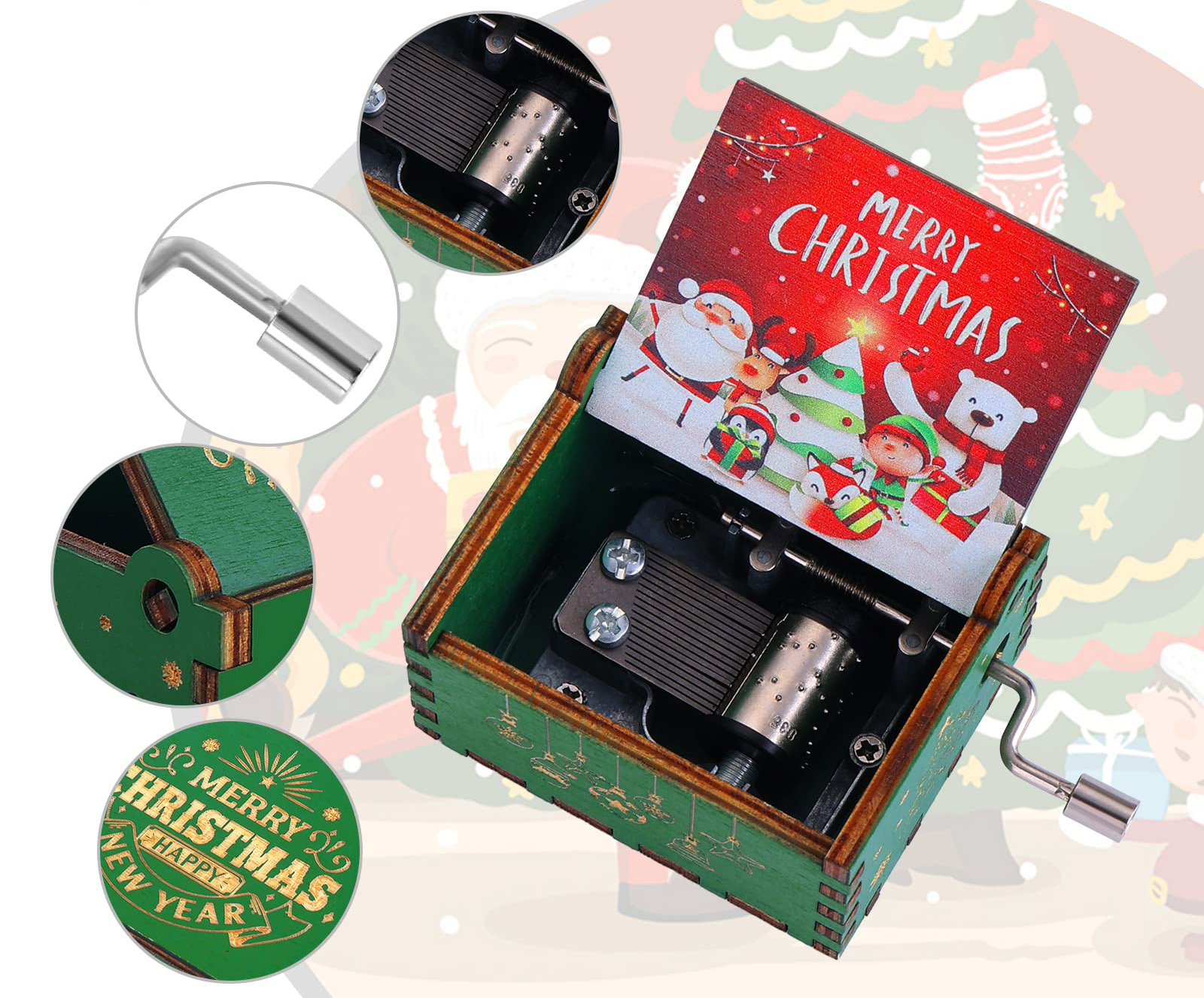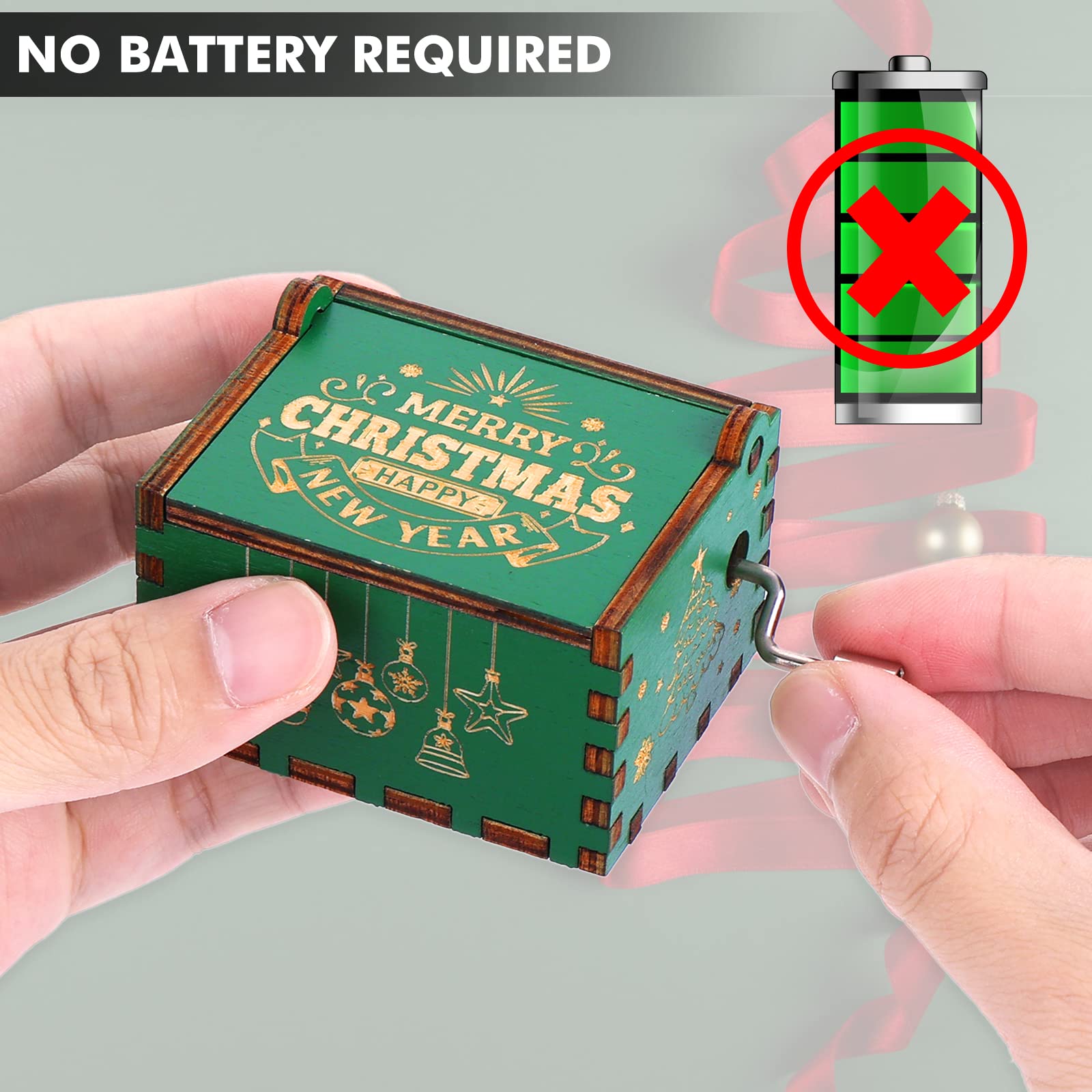 Cobee wooden Merry Christmas music boxes keep cranking the handle to play the music that doesn't need any battery, the crank is easy to move and kids also can do it easily. Playing the song Merry Christmas at a steady but slow pace lasts about 30 seconds, and then you can repeat it!